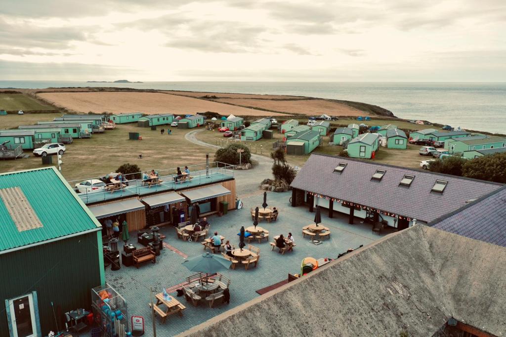 The Courtyard at Pencarnan is a vibrant, friendly space on Pencarnan Campsite, perched just above Porthsele Beach, and home to Pencarnan Pizzas, Y Can Cwrw, Drift Cafe & Lavish Bakes. Join us for craft beers, wood-fired pizzas, and homemade cakes 7 days a week in high season, and on weekends from Easter, depending on the weather.